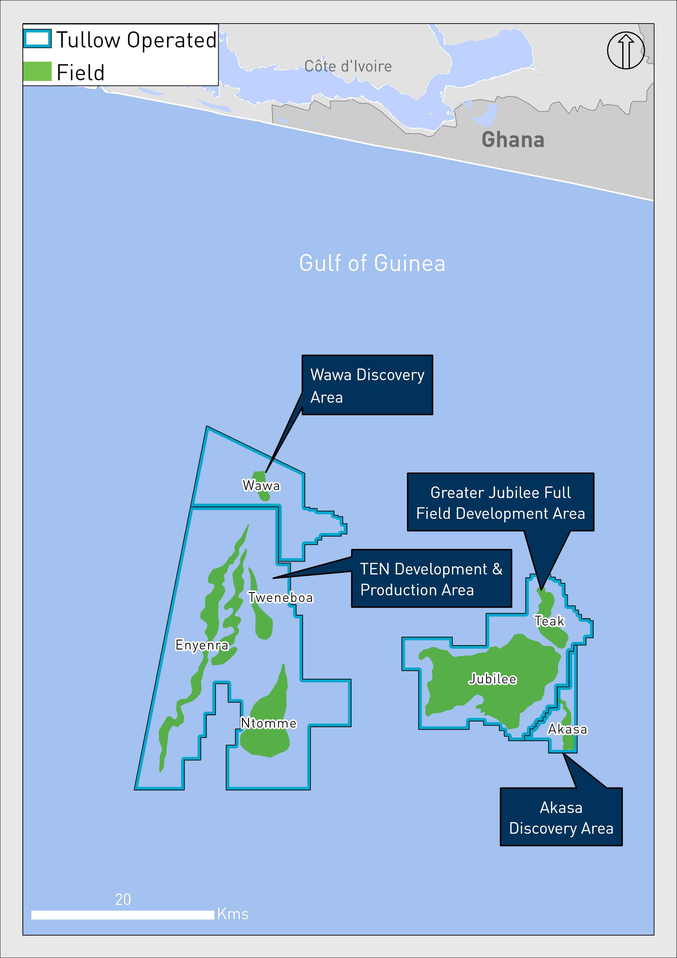 Gross oil production from the TEN fields averaged c.16.4 kbopd (c.9.0 kbopd net) in the first half of 2025.